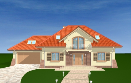 Dom jednorodzinny nawiązujący do stylu dworkowego o prostokątnej symetrycznej bryle, z ładnie wyeksponowanym wejściem. Wnętrze: salon + 5 pokoi + garaż. Reprezentacyjne schody. Ogrzewanie – gaz, paliwo stałe lub OZE.