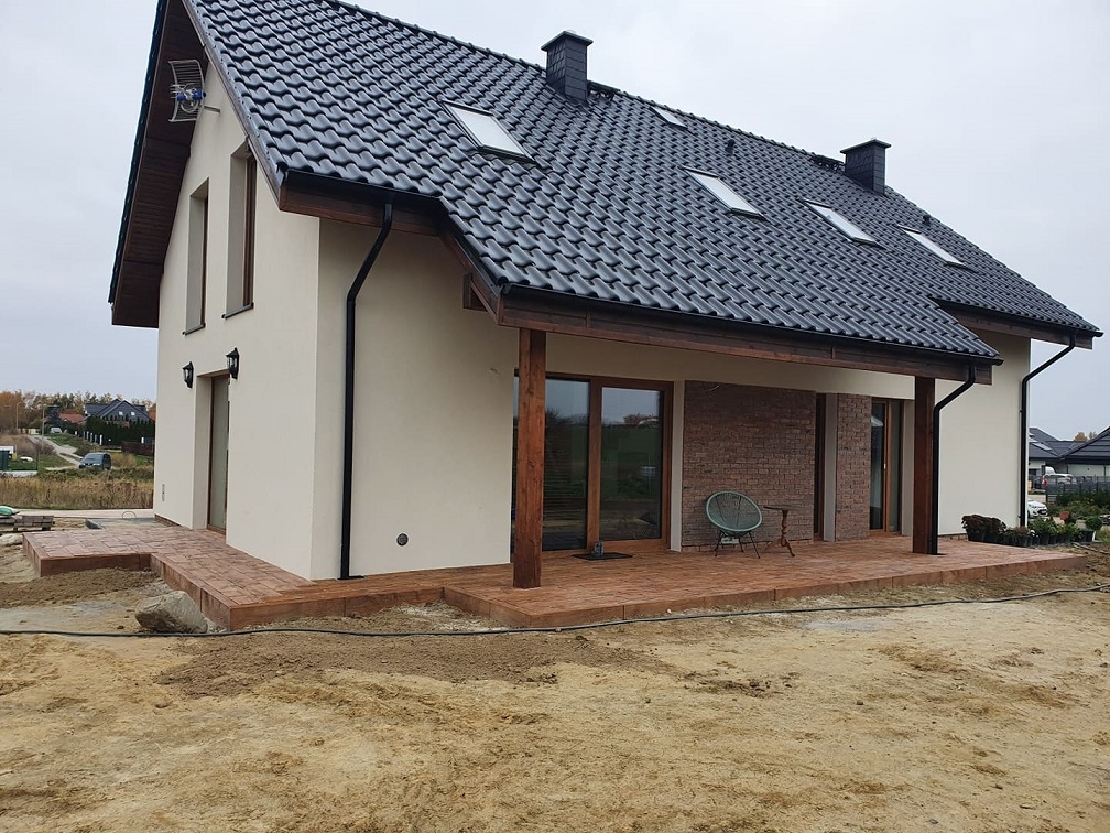 Projekt domu Biba pasuje na działkę gdzie plan miejscowy zakazuje stosowania daszków płaskich. W nie za dużej powierzchni udało się zmieścić cały program użytkowy. Bryła jest z dachami spadzistymi nad wystającymi z głównej bryły domu: garażem i zadaszeniem tarasu. Z dwóch stron domu przewidziane są praktyczne podcienie. Chronią dzięki temu strefę wejściową i taras przed deszczem. Dom można postawić na stosunkowo wąskich działkach. Prosta bryła zyskała nowoczesny, ale nie awangardowy wygląd dzięki dużym przeszkleniom połączonym z okładzinami klinkierowymi i drewnianymi. Bryła doskonale wpasuje się w dowolne otoczenie, a jego architektura z pewnością będzie ponadczasowa i szybko się nie znudzi.