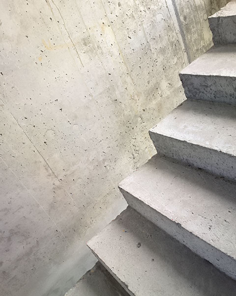 - Schody żelbetowe, które są powszechnie stosowane w domach jednorodzinnych, wznoszonych w technologii murowanej. Ich największą zaletą jest solidność, trwałość, oraz możliwość tworzenia dowolnego kształtu. Dodatkowo schody żelbetowe zapewniają bezpieczeństwo, dzięki stabilnej i mocnej konstrukcji, oraz charakteryzują się bardzo wysoką ognioodpornością. Jednakże są to schody ciężkie i masywne, często zintegrowane z konstrukcją domu, potrzebujące podparć w postaci belek i podstaw fundamentowych, z solidnym i dobrze dobranym zbrojeniem i odpowiedniej klasy betonem. Alternatywnym rozwiązaniem są schody wspornikowe o prostszej konstrukcji, które mogą być wykonane jako ażurowe, dzięki czemu nabiorą lekkości. Schody żelbetowe mogą być wykończone kamieniem, klinkierem, płytkami ceramicznymi, gresem, lub obudowane drewnem. Zdarza się często, iż wylane schody poleruje się i pokrywa specjalną powłoką do betonu co może dodatkowo być efektownym elementem surowego, nowoczesnego wnętrza.