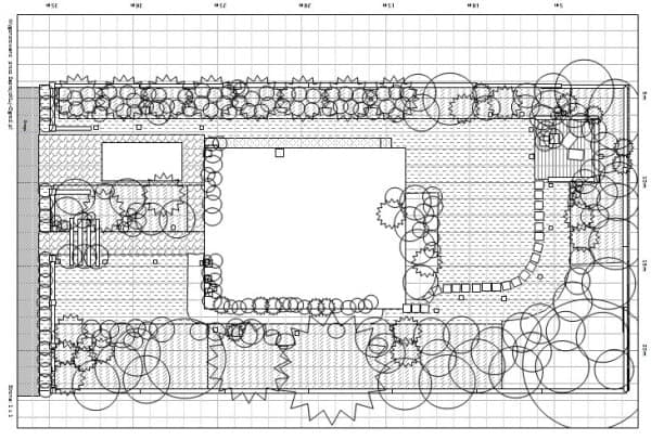 Tym razem idea oparta jest na liniach geometrycznych – łukach, oraz liniach prostych, co świetnie harmonizuje z bryłą budynku mieszkalnego. Dominuje roślinność krzewiasta, a kilka gatunków drzew tworzy szkielet ogrodu.