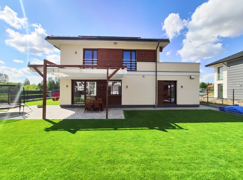 Dzięki przemyślanej architekturze i nowoczesnym materiałom budowlanym dom jest energooszczędny. W łatwy sposób można go przystosować do standardu NF 40.