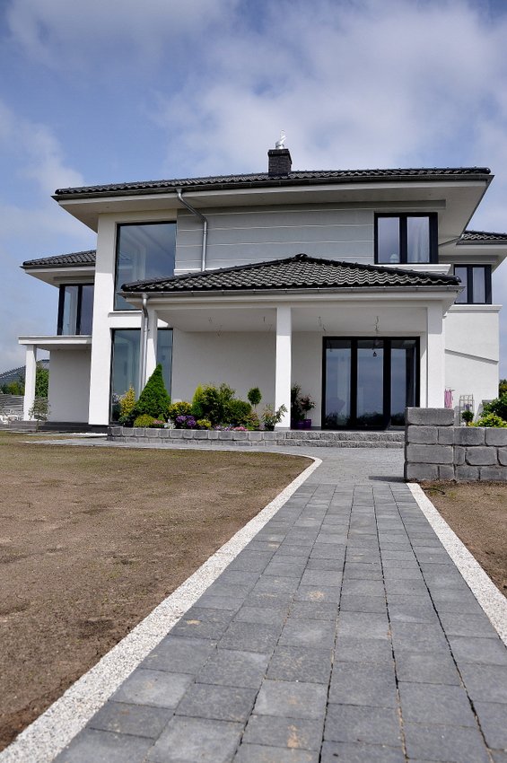 Projekt domu Riwiera to oryginalny, piętrowy dom przeznaczony dla 4- 6-osobowej rodziny. Budynek zaprojektowano jako jednopiętrową bryłę w kształcie litery T, przykrytą łagodnym wielospadowym dachem. Projekt domu Riwiera swoim stylem stara się nawiązać do charakteru miejskich willi, łącząc w sobie elementy modernistycznej architektury ze współczesnymi detalami i materiałami. W wyniku takiego połączenia udało uzyskano elegancką, dopracowaną formę. Budynek został zaprojektowany w taki sposób, aby mógł być zlokalizowany także na niekorzystnej względem stron świata działce. Nawet przy wjeździe od strony południowej w salonie będzie dużo światła - dzięki dużym przeszkleniom - również na front domu. Od strony ogrodowej zaprojektowano przytulny taras przykryty częściowo zadaszeniem podcienia. Wewnątrz, projekt domu Riwiera podzielono pod względem funkcjonalnym na strefy. Na parterze większość miejsca zajmuje przestrzeń dzienna, z pięknym dwukondygnacyjnym salonem - z antresolą na piętrze, z jadalnią, holem z reprezentacyjnymi schodami i częściowo otwartą kuchnią. Dodatkowo na parterze przewidziano pokój - gabinet lub zapasową sypialnię, oraz garaż. Schodami schodzimy do piwnicy, gdzie znajdują się pomieszczenia techniczne. Na piętrze zaprojektowano trzy sypialnie z garderobami, dwie łazienki (w tym jedna należąca do odizolowanego apartamentu rodziców z tarasem), oraz pralnię. Duży hol - antresola stanowi naturalne przedłużenie salonu. Pracownia posiada wersję odbicia lustrzanego projektu Riwiera oraz kilku wersjach: pomniejszonej (Projekt domu Riwiera 2), poszerzonej, o mniejszej głębokości (Projekt domu Rwiera 3) i pomniejszonej ze zmienionym układem wewnętrznym (Projekt domu Riwiera 4) oraz zmodyfikowana i ulepszona wersja bazowego projektu (Projekt domu Riwiera 5). Zapraszamy!