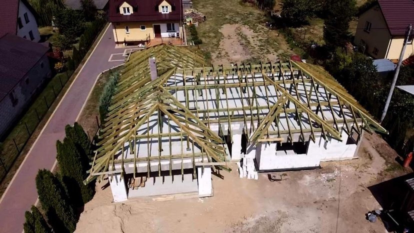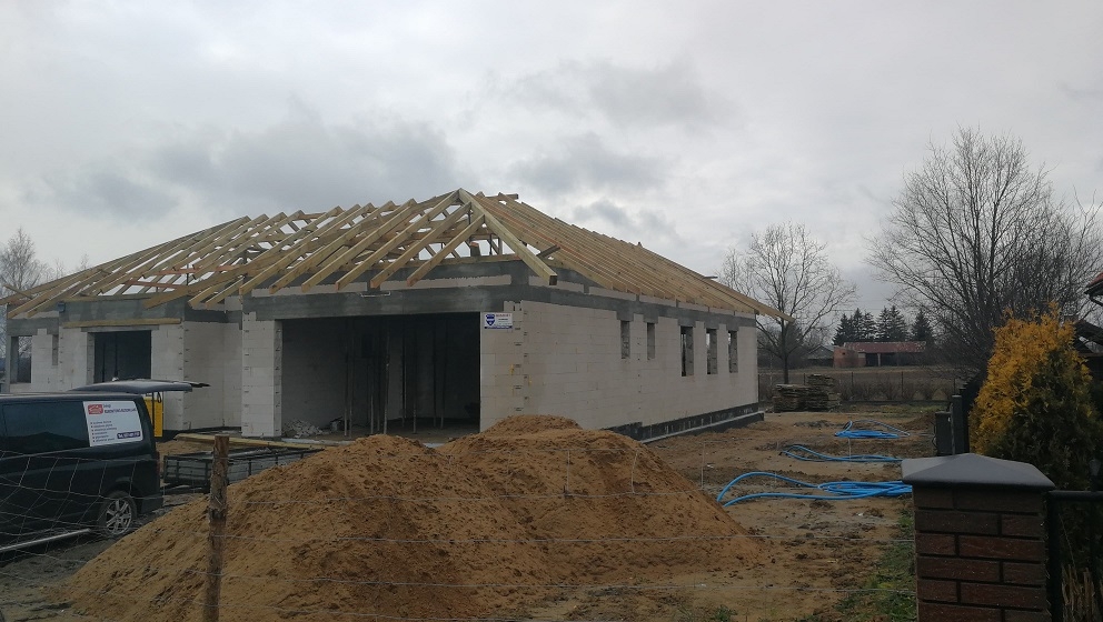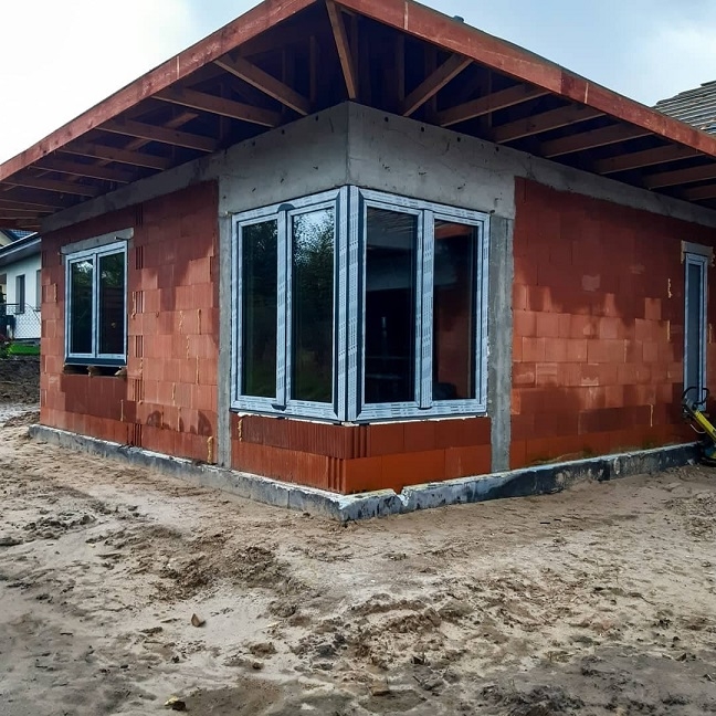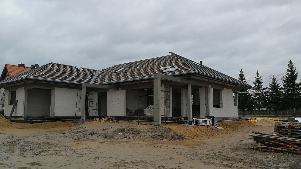 Stan surowy otwarty zawiera konstrukcję budynku, bez okien i drzwi, bryła budynku przekryta dachem, bez pokrycia docelowego, czyli na dachu jest folia przeciwwiatrowa na łatach i kontrłatach, lub papa na deskowaniu pełnym;