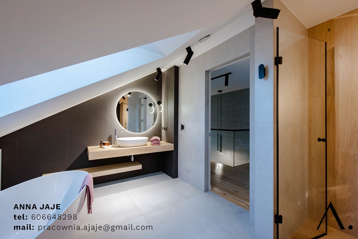 Część dzienna to salon ze ścianą kominkowo – telewizyjną połączony z tarasem szerokimi przeszkleniami. Pokój dzienny łączy się z jadalnią i kuchni.